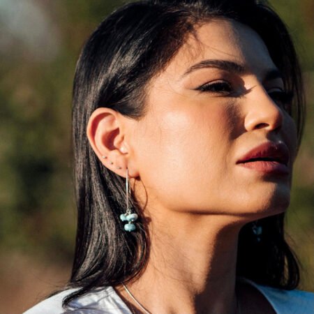 Larimar, amber stone and 925 silver, Chain size 18″. Size pendant 1.40″long