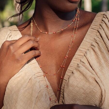 Gold plated chain with small Carnelian stones. Size chain 24”