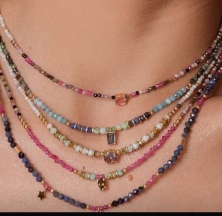 Necklace made with three small larimar stones inserted with 16″ long 925 silver chain.